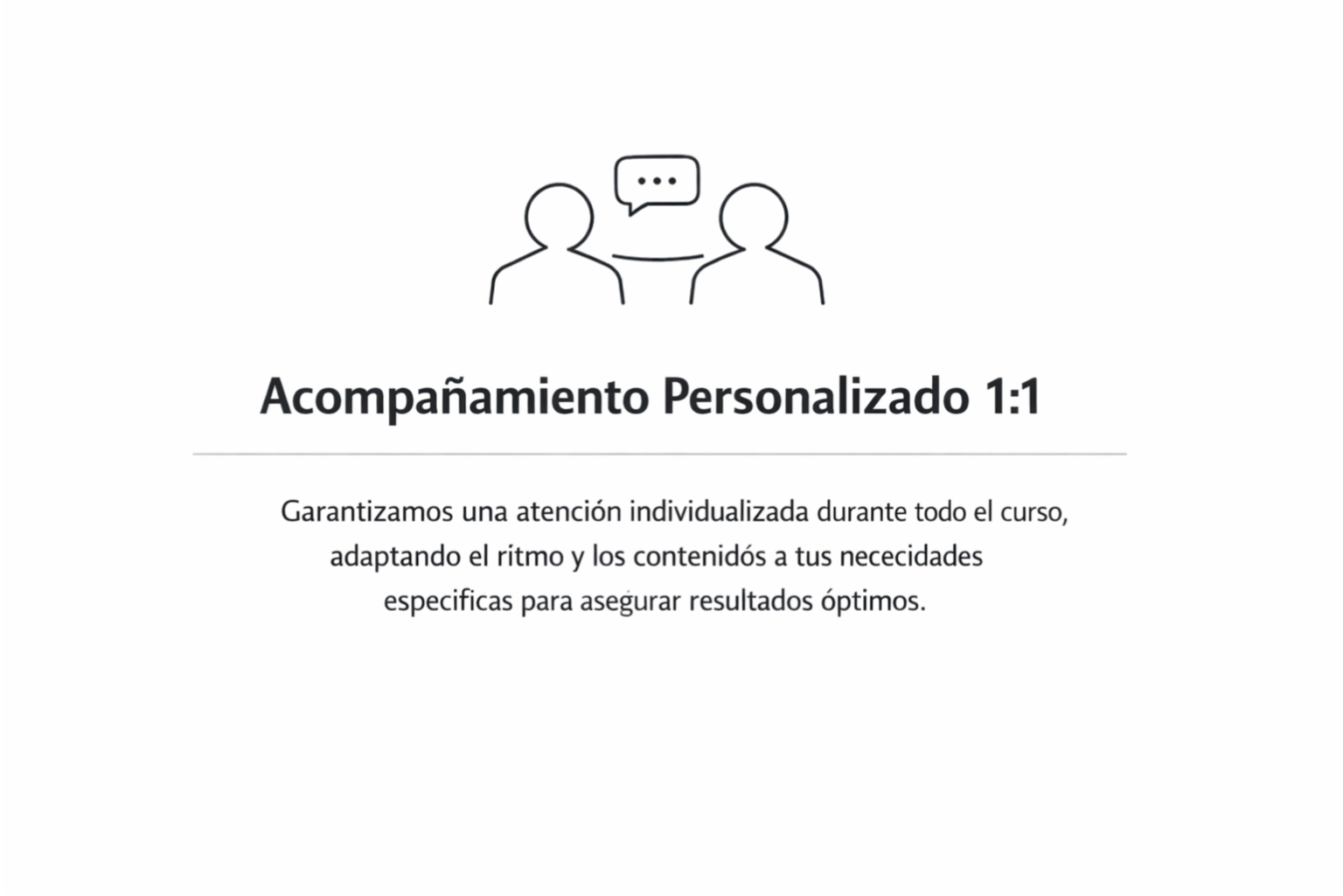 One-on-One es un programa de inglés personalizado, diseñado para líderes que requieren resultados puntuales. La formación se adapta a sus necesidades y metas laborales, fortaleciendo su capacidad para comunicarse con claridad y profesionalismo en presentaciones, correos, reuniones y negociaciones, con un enfoque directo en el desarrollo de habilidades lingüísticas aplicadas a su entorno profesional.