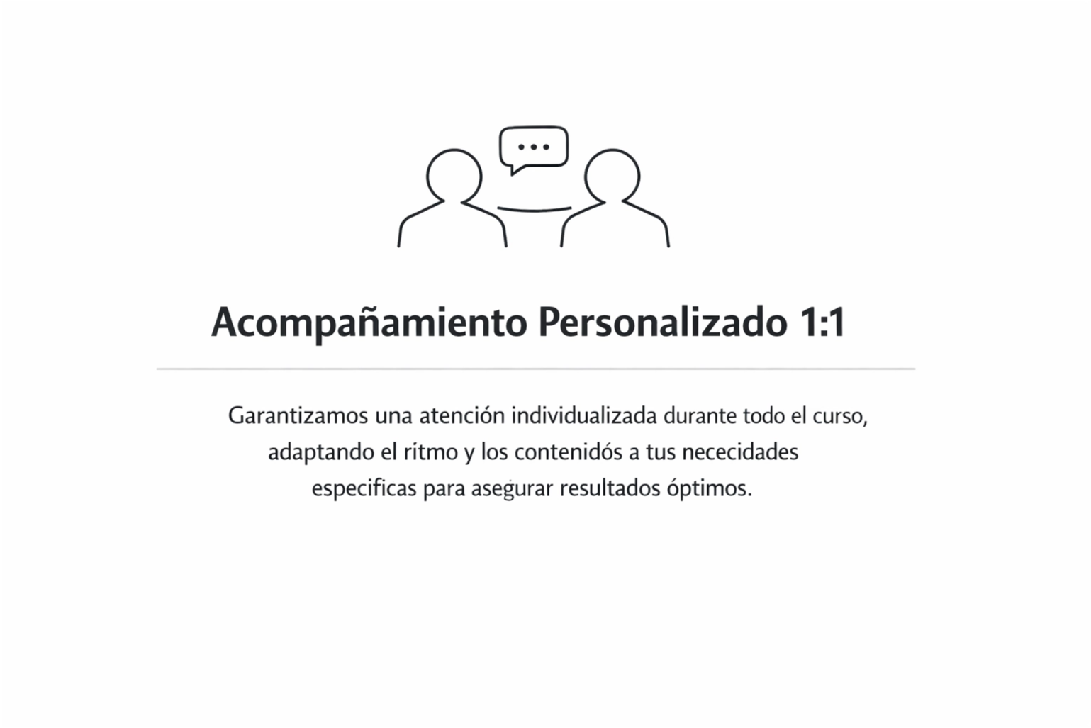 One-on-One es un programa de inglés personalizado, diseñado para líderes que requieren resultados puntuales. La formación se adapta a sus necesidades y metas laborales, fortaleciendo su capacidad para comunicarse con claridad y profesionalismo en presentaciones, correos, reuniones y negociaciones, con un enfoque directo en el desarrollo de habilidades lingüísticas aplicadas a su entorno profesional.