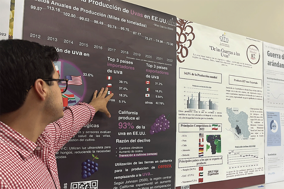 Los alumnos de octavo semestre de Inteligencia de Negocios e Innovación de CETYS Universidad CampusTijuana han presentado sus proyectos finales en el “Primer Concurso de Cartel de Inteligencia en Agronegocios“. El evento, que tuvo lugar en Centro Vida Estudiantil, contó con la participación de 20 carteles que exploraron la producción global de cultivos con valor de exportación, como las berries y la uva.