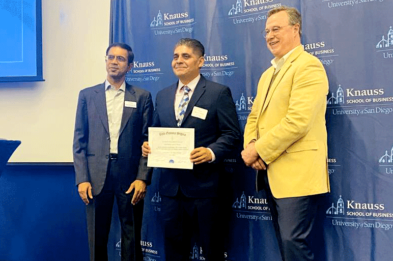 Tres alumnos que están por concluir la Maestría en Administración de Negocios (MBA por sus siglas en inglés) Doble Grado de la CETYS Graduate School of Business recibieron el máximo galardón y reconocimiento Beta Gamma Sigma (BGS), otorgado por la University of San Diego.