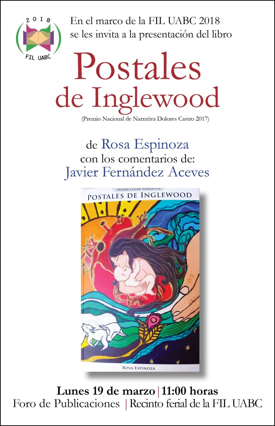 Por otro lado, se extiende también la invitación a las presentaciones de dos títulos escritos por editores del Programa Editorial de CETYS Universidad. El domingo 18 de marzo, a las 16:00 horas, en la Sala de Capacitación del edificio de Rectoría, Néstor Robles presenta su libro de cuentos Réquiem por Tijuana (Paraíso Perdido Editorial). Por su parte, el lunes 19 de marzo, a las 11:00 horas, en el Foro de Publicaciones, Rosa Espinoza presenta Postales de Inglewood, libro de relatos que le mereció el Premio Nacional de Narrativa Dolores Castro 2017. Presente en ambos eventos estará el escritor mexicalense, Javier Fernández, quien compartirá comentarios en torno a las obras mencionadas.