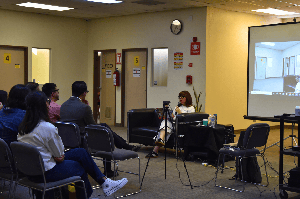 La jornada inició con la participación virtual de Doreen Ríos Quijano, de la Universidad de California en San Diego (UCSD), quien impartió la conferencia “Inteligencia artificial y sus objetos técnicos” desde el Auditorio de Posgrado de Campus Tijuana. Su intervención invitó a reflexionar sobre las transformaciones que la inteligencia artificial introduce en la creación, el arte y la comprensión de los objetos culturales.